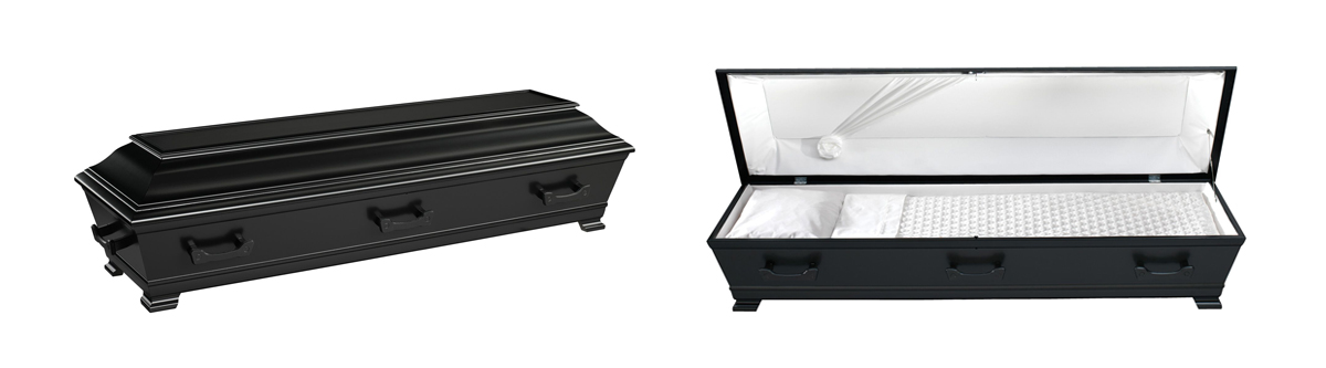 Klassisk kiste. Kan leveres med kors og hjørneornamenter. Valgfrie farger kan bestilles.