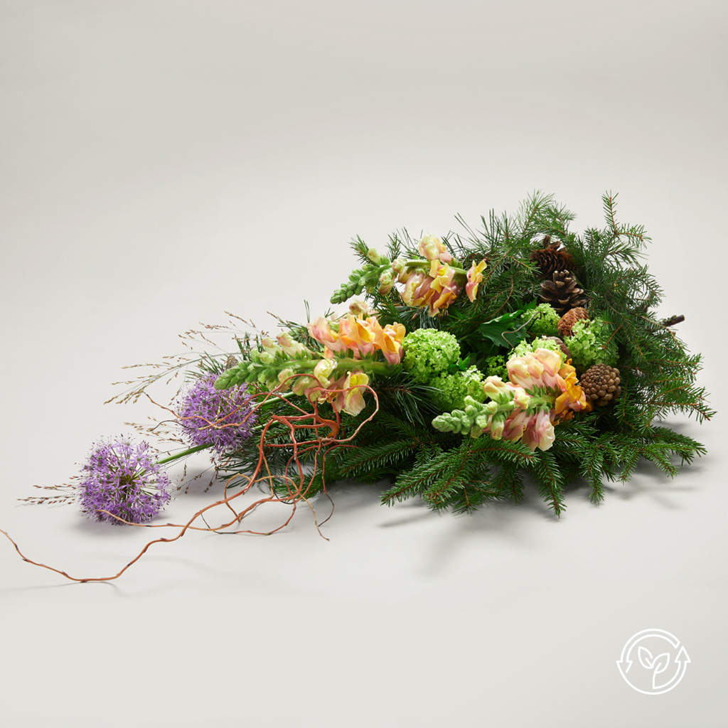 Vi har et bredt utvalg blomster til begravelse, og kan levere både til lokalet der seremonien skal være og hjem til etterlatte. Se vårt utvalg av blomster og bårebuketter nedenfor, eller bla i vår blomsterbrosjyre for inspirasjon til ulike uttrykk og stemninger som bidrar til å sette et personlig preg. Her er det mulig å skape en atmosfære som kan gjenspeile noe av avdødes interesser. Vi har også samlet en rekke forslag til sløyfetekster som en siste hilsen, og som kan leses høyt av prest eller gravferdstaler i seremonien.